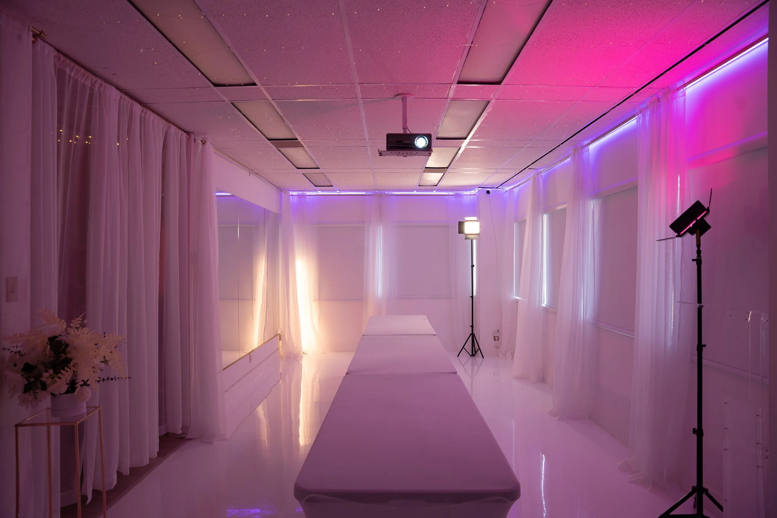 The Canvas is our larger Creator Lab and offers twice the space of Unit 401. With a fully white interior, full-size dance studio mirrors, wall-mounted projectors, and beautiful natural sunlight, it is designed for creators who need room to move, shoot, rehearse, and experiment.